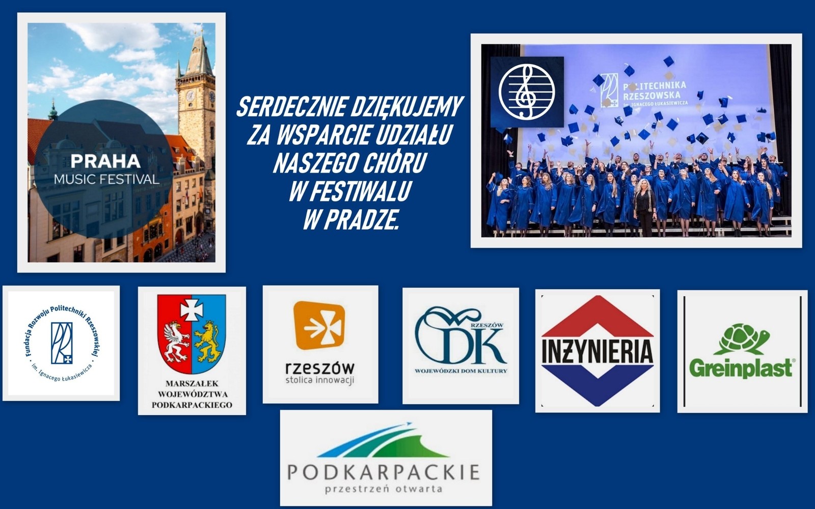 Z radością oraz dumą z dotychczasowych osiągnięć Chóru Akademickiego Politechniki Rzeszowskiej, wsparliśmy udział Chóru w 12. Międzynarodowym Festiwalu Chórów i Orkiestr w Pradze.