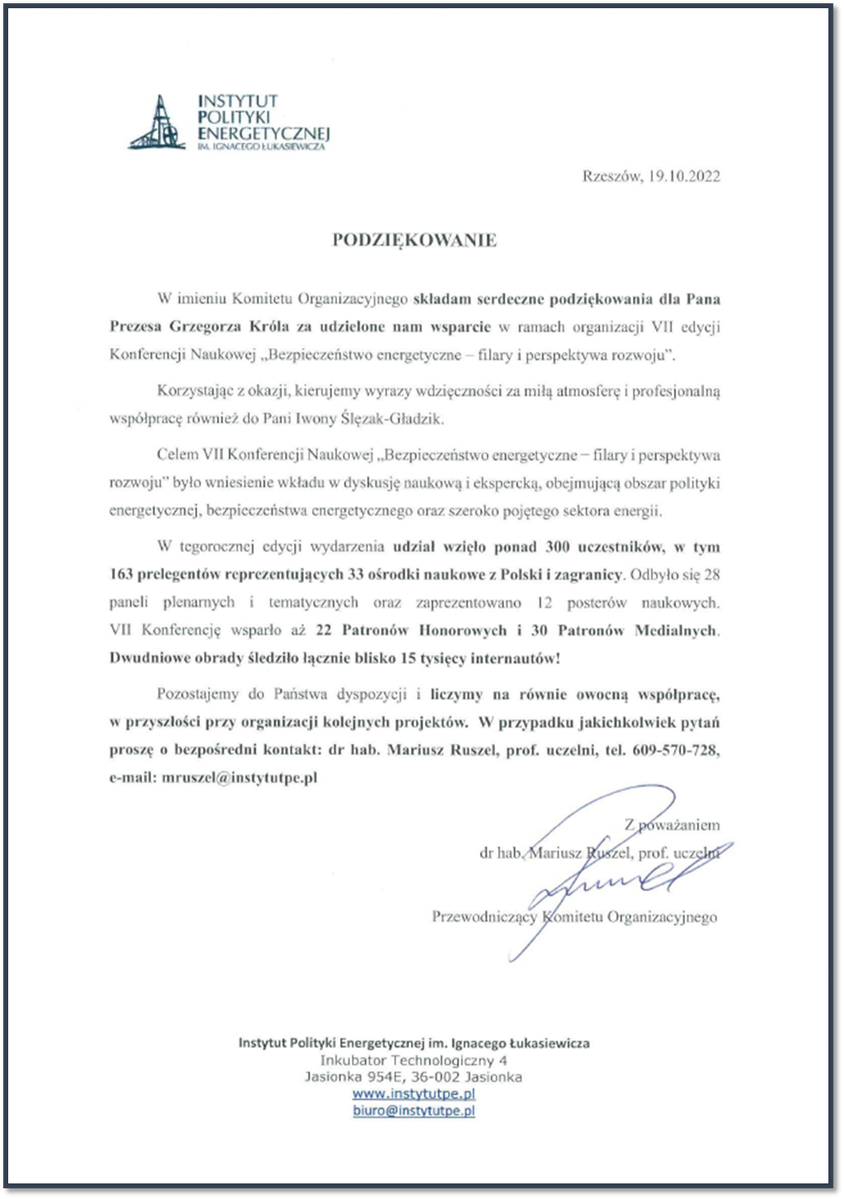 Więcej informacji na temat Konferencji można znaleźć na stronie Instytutu Polityki Energetycznej: https://www.instytutpe.pl/konferencja2022/